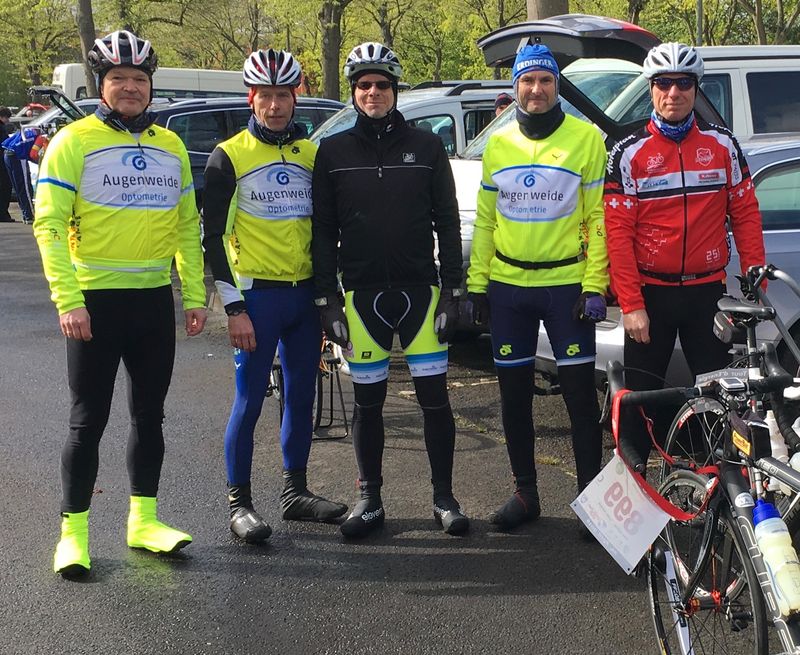 Winterlich gekleidet starteten Thomas Begemann, Mario Brunkhorst, Dr. Ralf Klask, Frank Rohleder und Andreas Toll zur 103km-Strecke in Göttingen, die als „German Cycling Tour“ gewertet wird. 2155 Teilnehmer waren vorgemerkt, während nur 1482 Rennfahrer im Ziel gewertet wurden.