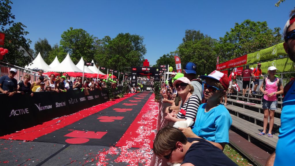 Geschwommen wurde eine 1,9 km Runde für die Frank Haller sagenhafte 26:57 min benötigte und damit sogar kurz auf Platz 27 lag, als er auf das Rad wechselte. Frank Rohleder schwamm 36:00 min, Sarikaya 36.12min, Brunkhorst 38.32 min und Begemann 40:20 min, ehe sie dann die Wechselzonen erreichten, um die anspruchsvolle, hügelige 90 km –Radrunde in Angriff zu nehmen. Zur Mittagszeit erreichten dann alle bei 32 Grad die zweite Wechselzone in Bad Schönborn. Haller wechselt nach einer Fahrzeit von 2: 45:25 Std auf die Laufstrecke und benötigte für die Halbmarathondistanz noch einmal 1:41:32 Std um dann nach einer Gesamtzeit von 5:01:17 Std. als 270. (20. AK50) das Ziel zu erreichen. Es war kein einfaches Rennen, so Brunkhorst bei seinem Zieleinlauf. Das Training in den kühlen Maitagen und nun die hochsommerlichen Temperaturen stellten eine starke Belastung für den Körper dar. Viel Flüssigkeit und Kühlung war gerade auf der Laufstrecke von Nöten, so Brunkhorst weiter.