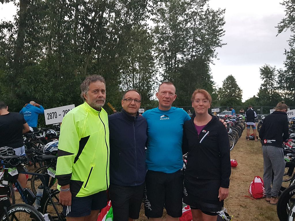 Nachdem es noch am Vortag des Rennens über 30 Grad warm war, kühlte es pünktlich zum Start des Triathlons ab, und Kirsti Sarikaya, Mario Brunckhorst, Jürgen Krause und Dirk Sauer nahmen jeweils in ihren Startgruppen das Rennen auf. Bei angenehmen 24 Grad Wassertemperatur im Main- Donau- Kanal war das Neoprenschwimmen erlaubt und so beendete Sarikaya in 1:13 h als Beste die Schwimmstrecke. Es folgten Brunckhorst mit 1:22 h und Krause mit 1:23h. Nach 1:34h wechselte Sauer auf das Rad. Die Radstrecke im Landkreis Roth verläuft über 2 Runden und wurde von über 100000 Zuschauern gesäumt, die die Teilnehmer begeisternd anfeuerten. Mario Brunckhorst in seinem ersten Start über eine Langdistanz absolvierte die Strecke in 5:44h. Es folgten Jürgen Krause ebenfalls das erste Mal bei einem Langdistanzrennen dabei in 6:05h, Kirsti Sarikaya in 6:43h und Dirk Sauer in 6:58h. Der abschließende Marathon führte die Athleten wieder zum Main- Donau- Kanal und anschließend zum Ziel nach Roth. Auch hier war von den 4 Heidekreislern Brunckhorst der Schnellste in 4:28h und in einer Gesamtzeit von 11:45h im Ziel. Es folgten Kirsti Sarikaya mit 5:28h Marathonzeit und 13:37h Endzeit. Ganz knapp dahinter Jürgen Krause mit 13:49h Gesamtzeit. Er hatte sich schon zu Beginn des Marathons verletzt und kam beim Lauf auf eine Zeit von 6:10h. Dirk Sauer erreichte das Ziel nicht. Bei km 30 auf der Laufstrecke verpasste er den cut- off um eine Minute und wurde aus dem Rennen genommen.