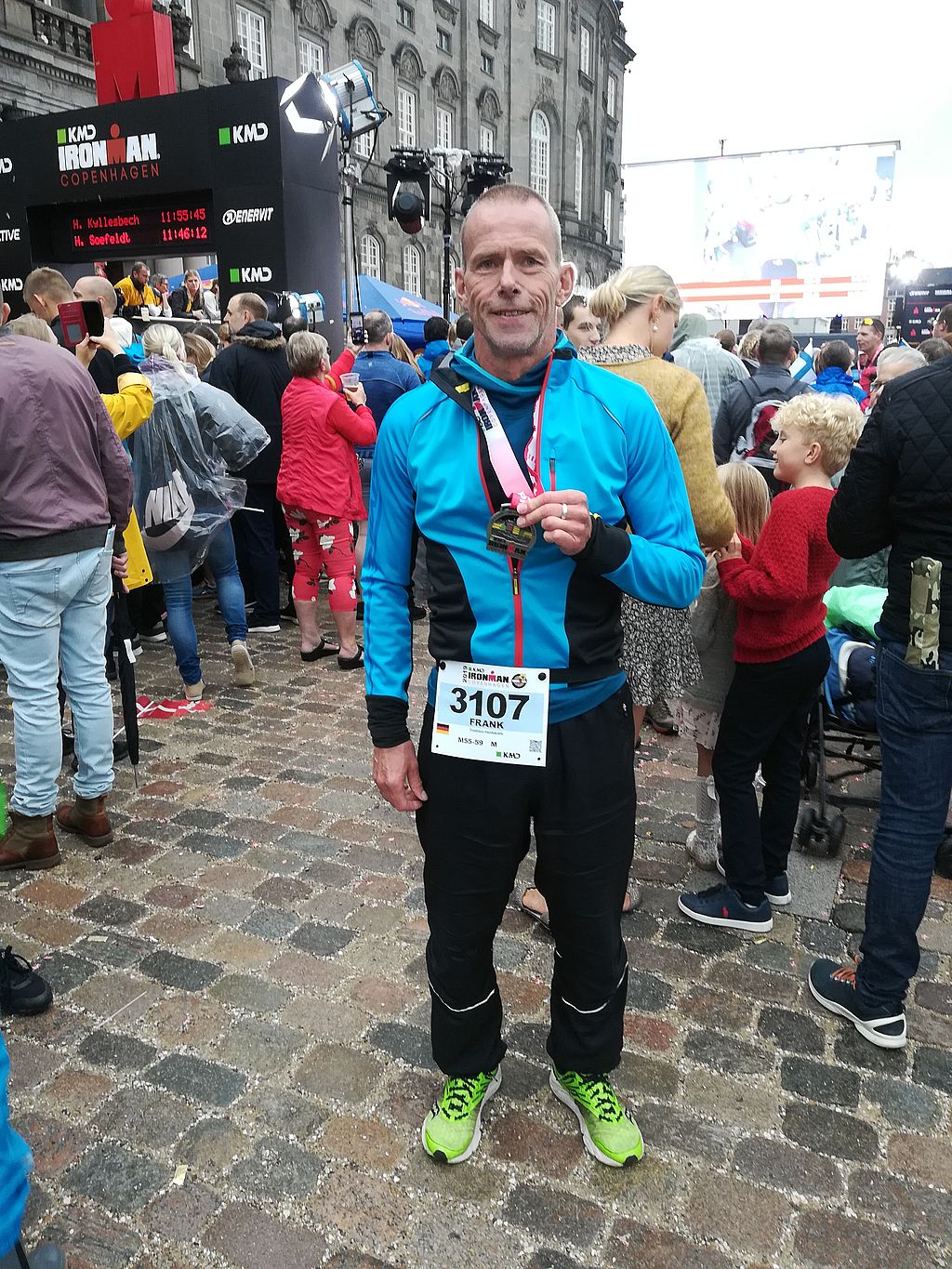 Anschließend starteten die Age Grouper im „Rolling-Start-Modus“. Rohleder und Willner erwischten beide einen guten Start in dem 18 Grad warmen Wasser. Nach 3,8 Kilometern Schwimmen und Zeiten von 1:12:36 Std sowie 1:25:17 Stunden, wechselte zuerst Rohleder gefolgt von Willner auf die 180 Kilometer lange Radstrecke durch das hügelige Hinterland Kopenhagens. Zwei Runden mussten die Triathleten absolvieren, bevor es wieder im Stadtzentrum auf die Laufstrecke ging. Auf dem Rad zeigte Frank Rohleder seine derzeit gute Radform und konnte nach einer Fahrtzeit von 5:24:12 Std einen 39. Platz seiner AK festigen. Willner benötigte 5:49:32 Std. für die 180 km, was derzeit Platz 78 seiner AK bedeutete, ehe die Laufschuhe geschnürt wurden, um die abschließenden 42,2 km in Angriff zu nehmen.