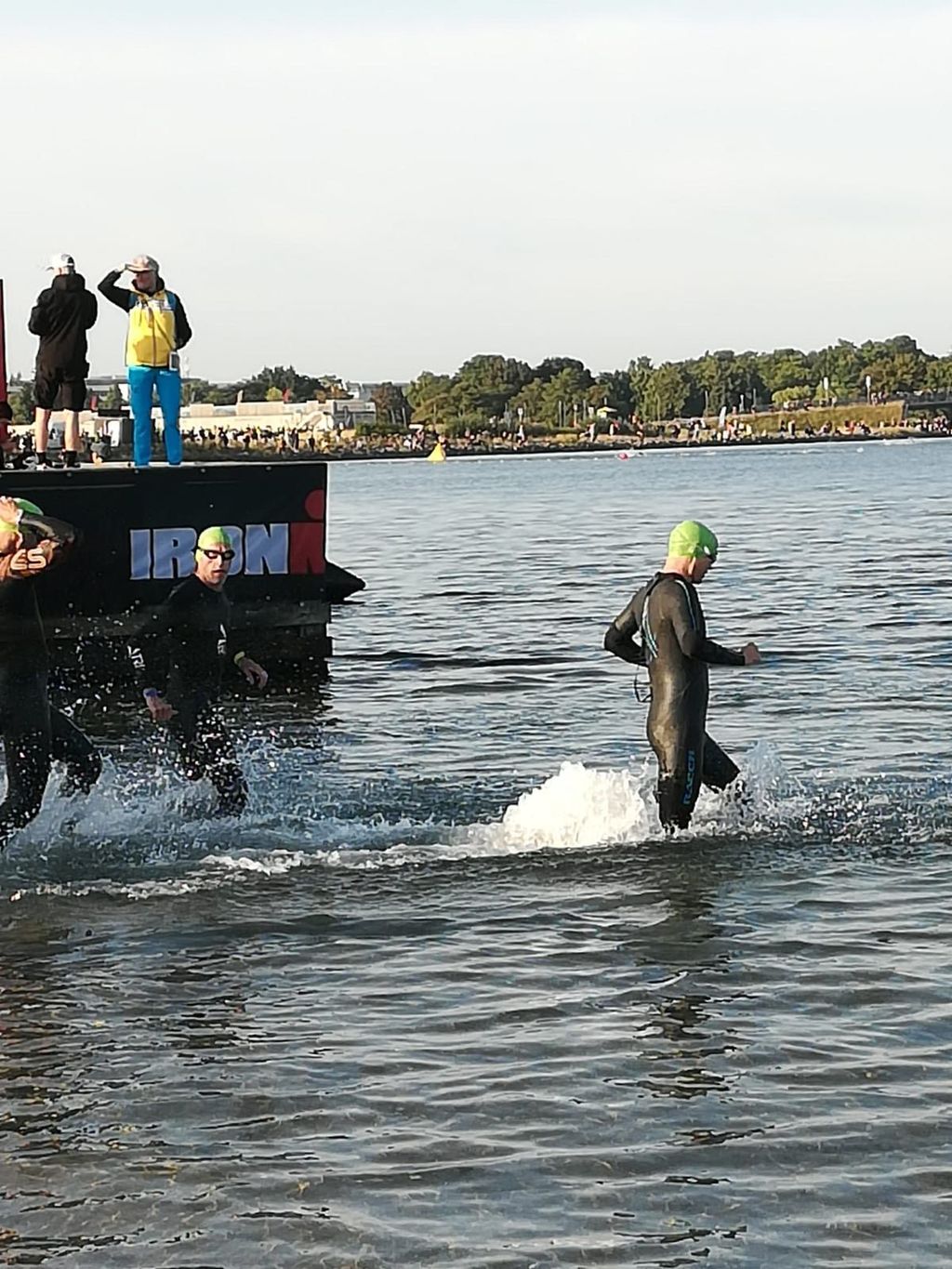 Start der Profis erfolgte um 07:00 Uhr. Ich habe mich in einer späteren Startgruppe, um 07.40 Uhr, eingetragen und der Rolling-Start erfolgte pünktlich, so dass ich um 07:42 Uhr im Wasser war, um die 3,8 km lange Schleife in Angriff zu nehmen. Das Schwimmen verlief normal ohne große Hakeleien. Nach 1:18 Std hatte ich wieder festen Boden unter den Füßen. Nun in die Wechselzone, den richtigen Wechselbeutel schnappen und ab ins Zelt zum Umziehen. Radbekleidung an, Neo eingepackt und den Beutel ab in die Tonne. Aufs Rad und los geht’s Richtung Norden. Zunächst ca. 12 km durch Kopenhagen, ehe es dann bei wunderschön blauem Himmel und Sonnenschein für 30 km an der Küste entlang ging. Der Rückweg führte durch ruhige Straßen im Hinterland bis an den Stadtrand Kopenhagens um die Runde dann ein zweites Mal zu fahren.