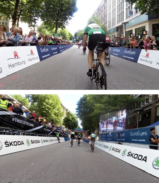 Die Cyclassics 2016 bringen ca. 20.000 Jedermänner und Frauen buchstäblich ins Rollen und Hunderttausende Zuschauer ins Jubeln, Klappern und Knarren mit allen möglichen Instrumenten. Die Mönckebergstraße ist ein einzig tobendes Meer von radsportbegeisterten Anhängern. Es ist eine Kulisse wie in Rio, denn es fahren hier ihre Frauen, ihre Männer, ihre Freunde, ihre Vereins-Kolleginnen und Kollegen. Jedermann oder Jede-Frau erfährt hier die Jubelbegrüßung. Mit rhythmischem Klopfen auf die Seitenabsperrungen werden alle auf den letzten 500m angefeuert und viele packt der Ehrgeiz, alle Kraft noch einmal in die Pedalen zu bringen und die Zeiten zu verbessern. Paare lassen sich Hand in Hand auf den letzten Metern mit glücklichem Lächeln feiern. Vereinsgruppen mit einheitlichem Outfit sorgen für die Demonstration einer sportlichen Einheit.
