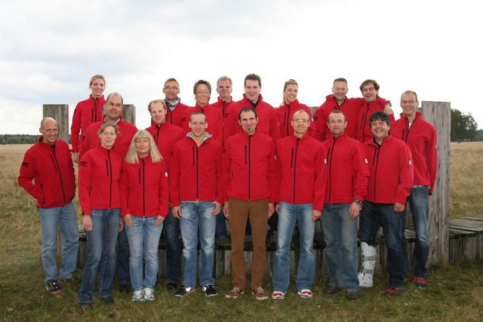 Beim abschließenden Gruppenbild wurden dann auch die neuen Vereinsjacken präsentiert.