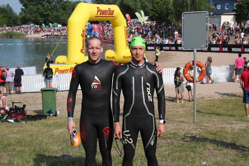 Der Kraichgau ist ein Landstrich im Nordwesten von Baden-Württemberg. Im „Land der 1000 Hügel“ wurden dieses Jahr erstmalig die Deutschen Meisterschaften über die Ironman – Halbdistanz ausgetragen. Henning Mühlenhaupt und Frank Haller vom Verein „Triathlon Heidekreis“ stellten sich dieser Herausforderung in Bad Schönborn.  Insgesamt 2500 Sportler aus 40 Nationen waren für den Wettkampf angemeldet. Als Auftaktdisziplin wurden zunächst 1,9 Km im Ubstadt-Weiher geschwommen. Auf Grund der vielen Schwimmer wurde in nacheinander folgenden Gruppen gestartet, entsprechend ihren Altersklassen. Allerdings konnten Mühlenhaupt und Haller schnell auf vorher gestartete, langsamere Schwimmer aufschließen und mussten diese dann häufig im Zick-Zack- Kurs umschwimmen. Haller verließ das Wasser nach gut 26 Minuten, Mühlenhaupt folgte nach einer Schwimmzeit von 32 Min. Nach schnellem routiniertem Wechsel konnten sich beide auf die 90 Km Radstrecke begeben. Nach einem flachen ersten Teilstück folgte ein sehr hügeliger Kurs mit insgesamt über 1000 Höhenmetern. Auf kurze Steilstücke, bei denen die Schaltübersetzung der Räder kaum ausreichte, folgen rasante Abfahrten mit über 70 Km/h. Mittlerweile ist das Thermometer auf knapp 30°Celsius angestiegen. Ausreichend Getränke, die Aufnahme von zusätzlichen Kohlenhydraten und die Kühlung mit Wasser wurden nun unerlässlich um bei der Hitze die Leistungen der Athleten abrufen zu können. Frank Haller benötigte für die Radstrecke 2:37:28 Std. Henning Mühlenhaupt konnte nach 2:41:47 Std. sein Rad in der zweiten Wechselzone abstellen und in die Laufschuhe wechseln. Abschließend musste noch ein Halbmarathon absolviert werden, auf einem dreimal zu durchlaufendem Rundkurs in Bad Schönborn. Auch die Laufstrecke war stark profiliert und bot wenig Schatten, somit erwies sich die Abschlussdisziplin als die eigentliche Herausforderung. Trotz der zahlreichen Zuschauer mussten sich die Läufer auch immer wieder selbst antreiben und motivieren um die 21,1 Laufkilometer konstant laufen zu können. Henning Mühlenhaupt konnte nach einer Laufzeit von 1:36 Std. den Zielbogen durchlaufen. Nach einer Gesamtzeit von 4:54:44 Std. belegte er Platz 437 der Gesamtwertung und damit Platz 84 in seiner Altersklasse. Frank Haller benötigte 1:41:54 Std. für die Laufstrecke, er belegte damit Platz 358 im Feld der 2500 Teilnehmer und Platz 50 seiner AK. Erschöpft aber zufrieden mit ihren Leistungen bilanzierten beide ihre guten Ergebnisse, im stark besetzten Startfeld der Deutschen Meisterschaften über die Mitteldistanz.