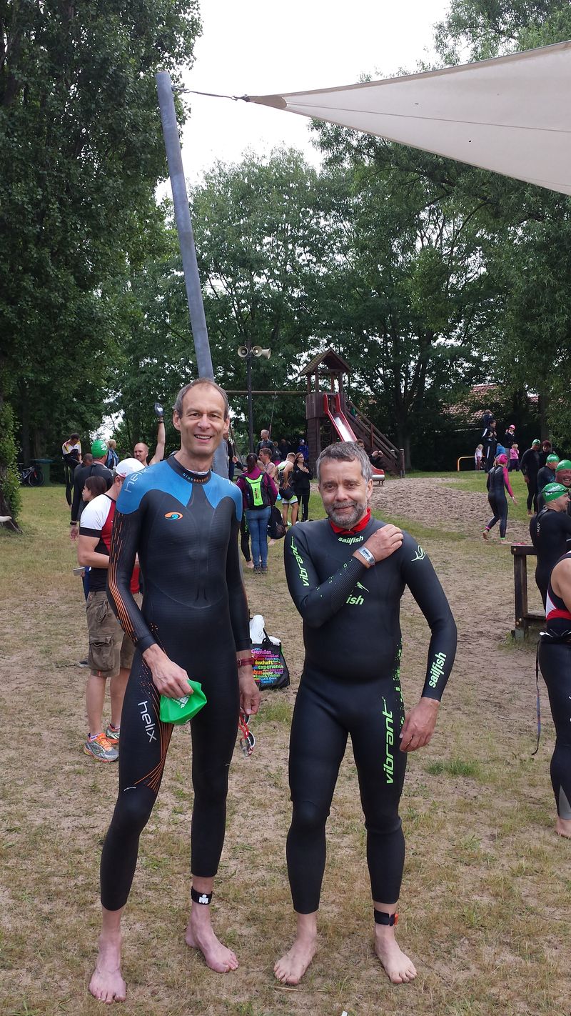 Der Auftakt dieser Serie aus drei Rennen fand jetzt am Sonntag im Kraichgau in der Nähe von Karlsruhe statt. Auch zwei Athleten aus dem Triathlon Heidekreis Team waren am Start und konnten sich über gute Leistungen freuen. Der 50jährige Michael Ringe schwamm die 1,9km im mit 19,5°C warmen Hardtsee in Ubstadt- Weiher in 36:23 min. Der in derselben Altersklasse startende Dirk Sauer benötigte 42:58 min. Nach dem Schwimmen ging es auf die anspruchsvolle Radstrecke im Kraichgau. Eintausend Höhenmeter galt es zu überwinden. Enge Kurven und steile Abfahrten verlangten den insgesamt 2456 Teilnehmern einiges ab. Michael Ringe konnte dann schon nach 2:45h auf die Laufstrecke wechseln. Dirk Sauer war 15 min länger unterwegs und beendete das Radfahren in genau 3 Stunden. Nachdem es die Tage vorher heftig geregnet hatte, waren die äußeren Bedingungen am Wettkampftag fast optimal. Die Sonne war durch viele Wolken verdeckt nicht zu heiß und es regnete nur ganz wenig. Der Wechsel vom Rad auf die Laufstrecke fand in Bad Schönborn statt. Von sehr vielen Zuschauern angefeuert ging es über drei Runden auf einer sehr welligen Strecke zum stimmungsvollen Zieleinlauf im Zentrum von Bad Schönborn. Michael Ringe erreichte das Ziel mit einer Laufzeit von 1:45h in einer Gesamtzeit von 5:13h und war damit 73. in der AK50. Dirk Sauer absolvierte den Halbmarathon in 2:06h und durfte sich am Ende über eine Gesamtzeit von genau 6 Stunden freuen. Er erreichte in der AK50 Platz 187.