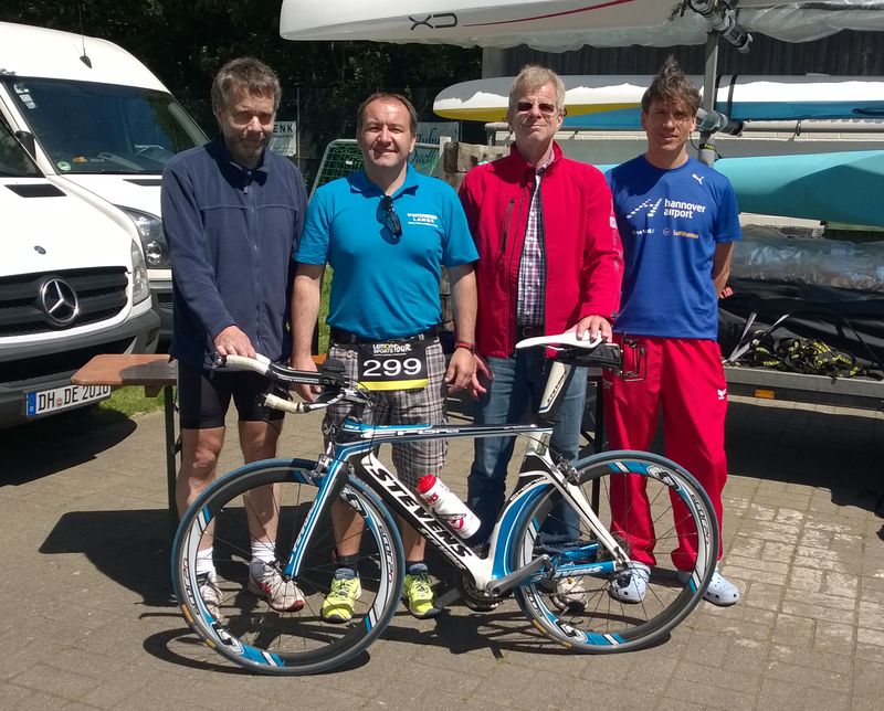 Am Sonnabend stand zunächst die Sprintdistanz auf dem Programm, in der gleichzeitig gewerteten Landesliga Niedersachsen starteten vier Triathleten aus dem Heidekreis. Der Lindener Stichkanal hatte bereits eine angenehme Wassertemperatur von knapp 20° Celsius erreicht. Die Orientierung fiel den Schwimmern auf der 750 Meter langen, schnurgeraden Kanalstrecke verhältnismäßig leicht. Die Wechselzone war ca. 600 Meter entfernt, spätestens hier kamen die Triathleten wieder auf „Betriebstemperatur“. Die folgende 20 Km Radstrecke durch das Calenberger Land gestaltete sich wellig und leicht windanfällig. Bei sommerlichem Wetter waren hier eine Vielzahl von Triathleten gleichzeitig unterwegs. Den abschließenden 5 Km Lauf konnte Sven Herbig nach gut 18 Minuten beenden, er durchlief das Ziel nach insgesamt 1:09 Std. und belegte damit den 117. Platz. Ihm folgte Thomas Begemann in einer Zeit von 1:21 Std. Auch Dirk Sauer (1:23 Std.) und Jürgen Krause (1:30 Std.) erreichten ein respektables Ergebnis und trugen so zur guten Mannschaftsleistung des Vereins bei.
