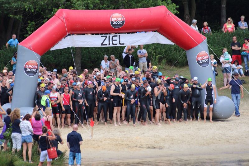 Bereits zum dreizehnten Mal trafen sich die Triathleten in Munster auf der Sprintdistanz. Am Start waren ca. 150 Einzelstarter und 17 Staffeln. Das windstille und sonnige Wetter sorgte für optimale äußere Bedingungen. Der Flüggenhofsee hatte bereits eine Wassertemperatur von 21°C erreicht. Somit entschieden sich zahlreiche Athleten die Auftaktdisziplin ohne Neoprenanzug zu absolvieren. Nach dem Startschuss der Weinkönigin und dem Sprint ins Wasser formierten sich die Athleten, abhängig von ihrer Schwimmgeschwindigkeit. Der 500 m- Rundkurs war mit Bojen deutlich markiert. Somit war die Orientierung im See für die meisten Schwimmer kaum ein Problem. Trotzdem zog sich das Feld schon hier stark auseinander. Nach dem steilen Schwimmausstieg über den Sandstrand ging es nach dem ersten Wechsel mit dem Rad auf die Panzerringstraße, rund um Munster. Der flache und damit schnelle 23 Km- Radkurs war fast komplett für den Straßenverkehr gesperrt. Am Wendepunkt, und damit der Streckenhälfte, konnten die Triathleten der Konkurrenz in die Augen blicken und deren Abstände erkennen. Hinter dem Gymnasium Munster, nach dem zweiten Wechsel, ging es auf die abschließenden 5 Laufkilometer. Die Laufrunden um den Mühlenteich sind sehr zuschauerattraktiv, so dass die Athleten hier kräftig angefeuert wurden. Vom Verein Triathlon Heidekreis durchlief Frank Haller das Ziel nach 1:04:28 Std. und sicherte sich auf Platz 4 der Gesamtwertung gleichzeitig den 1. Platz in der Altersklasse 45. Direkt dahinter folgte Andre Meyer auf Platz 5 in einer Zeit von 1:04:47 Std. (Platz 1 AK 30). Platz 11 der Wertung belegte Michael Schmidt nach 1:08 Std. (Platz 5 AK 35), Kai Rosebrock benötigte 1:12:39 Std. für Platz 27 (Platz 7 AK 45). Seinen ersten Triathlon absolvierte Mario Brunckhorst in sehr guten 1:16:09 Std. und belegte damit einen Platz im vorderen Drittel des Feldes (Platz 50: 1:16:09 Std. Platz 9 der AK 40). Kirsti Sarikaya hatte ihre gute Form schon vor kurzem in Hannover bewiesen und konnte diese auf Platz 5 der Damenwertung nach 1:16:33 Std. (Patz 1 AK 45) wieder bestätigen. Ihr folgten Thomas Begemann (1:17:23 Std. Platz 3 AK 55), Axel Neumann (1:18:36 Std. Platz 8 AK 50) und Jürgen Krause (1:18:53 Std. Platz 11 AK 40). Den ersten Platz in der AK 50 weiblich sicherte sich Heidi Eggers in einer Zeit von 1:20:55 Std. Ebenso zufrieden war Anja Poppe- Neumann mit dem 2. Platz der AK 45 nach 1:25:31 Std. Die erfolgreiche Bilanz des Vereins „Triathlon Heidekreis“ komplettierten Andrea Stolz (1:27:15 Std. Platz 3 AK 45) und Walter Kerz (1:36:29 Std. Patz 9 AK 60).